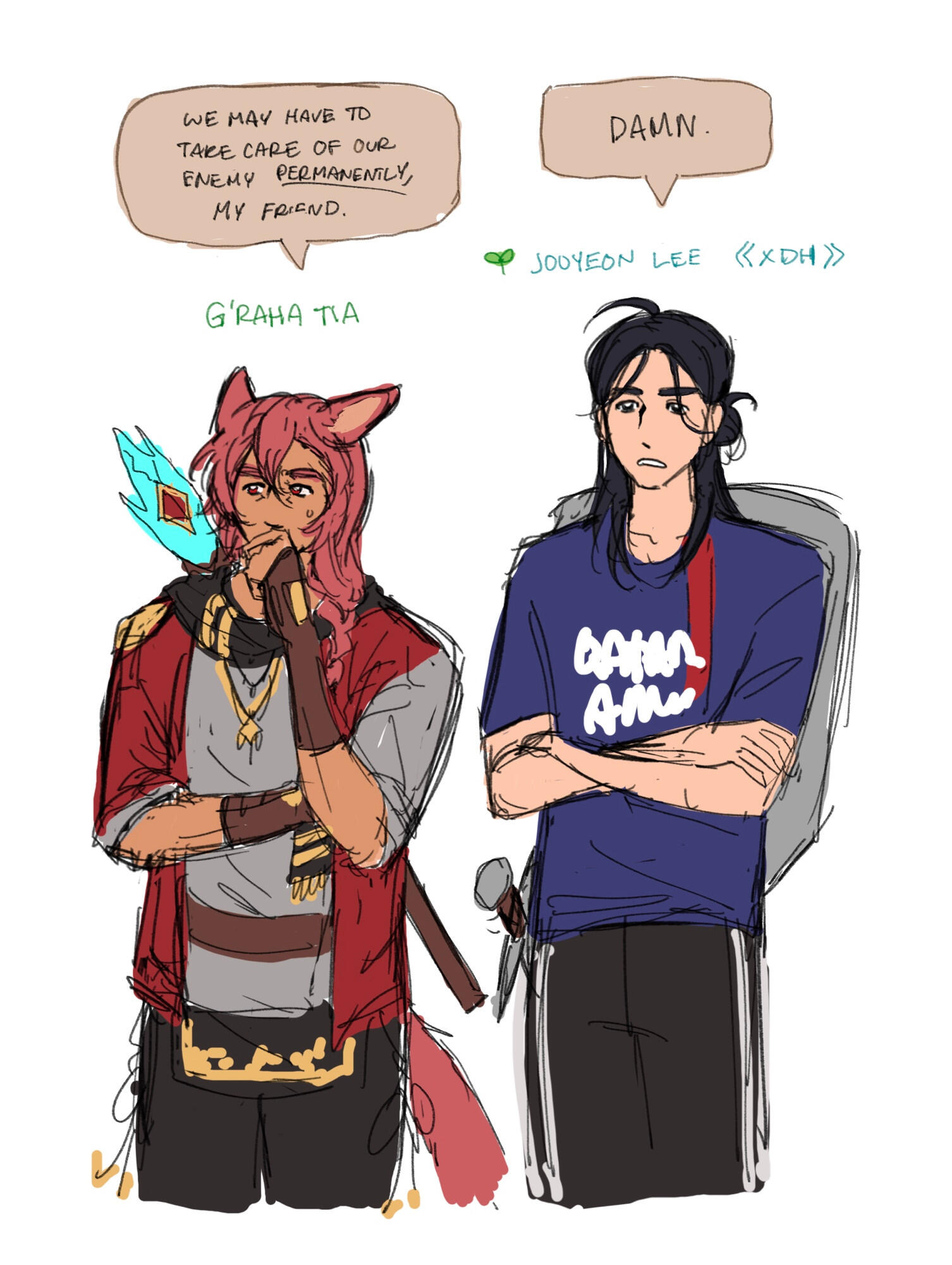 ★ Please provide at least 2 different image references of your character(s). If they are screenshots from a game, please ensure that they are well lit and any important details are visible. (Through Google Drive, Imgur, Ko-fi file upload, etc)★ If you are requesting a character in an outfit different than the one provided in the reference, please make sure to include images of the details in areas that may be exposed; For example: If your character has important details on their neck, like Au Ra scales in FFXIV, please include reference that has their neck showing! It makes it easier! :)★ I would appreciate any references/descriptions of pose ideas and/or your character(s) personalities so I can properly portray them. Anything helps! Unless you have no preference at all, lolWORK FLOW: